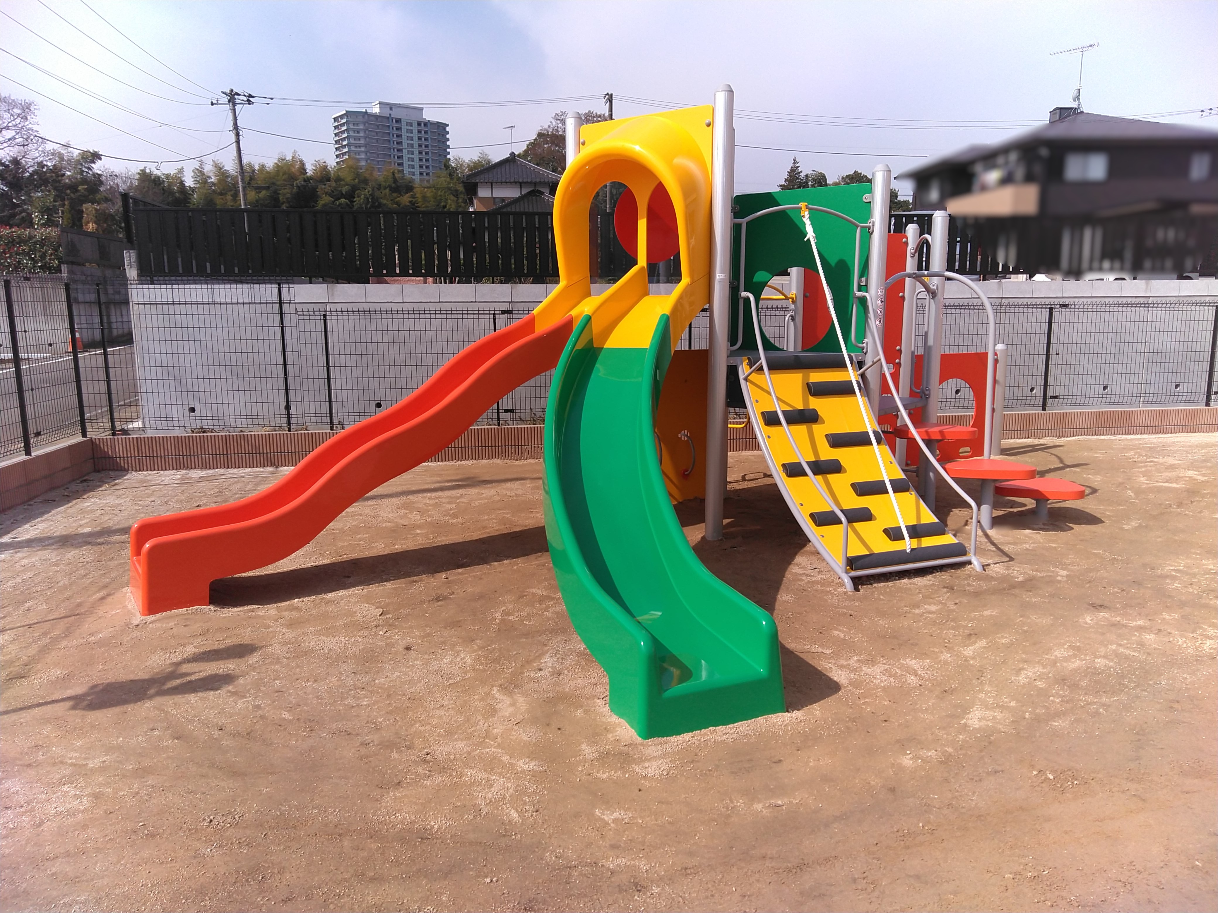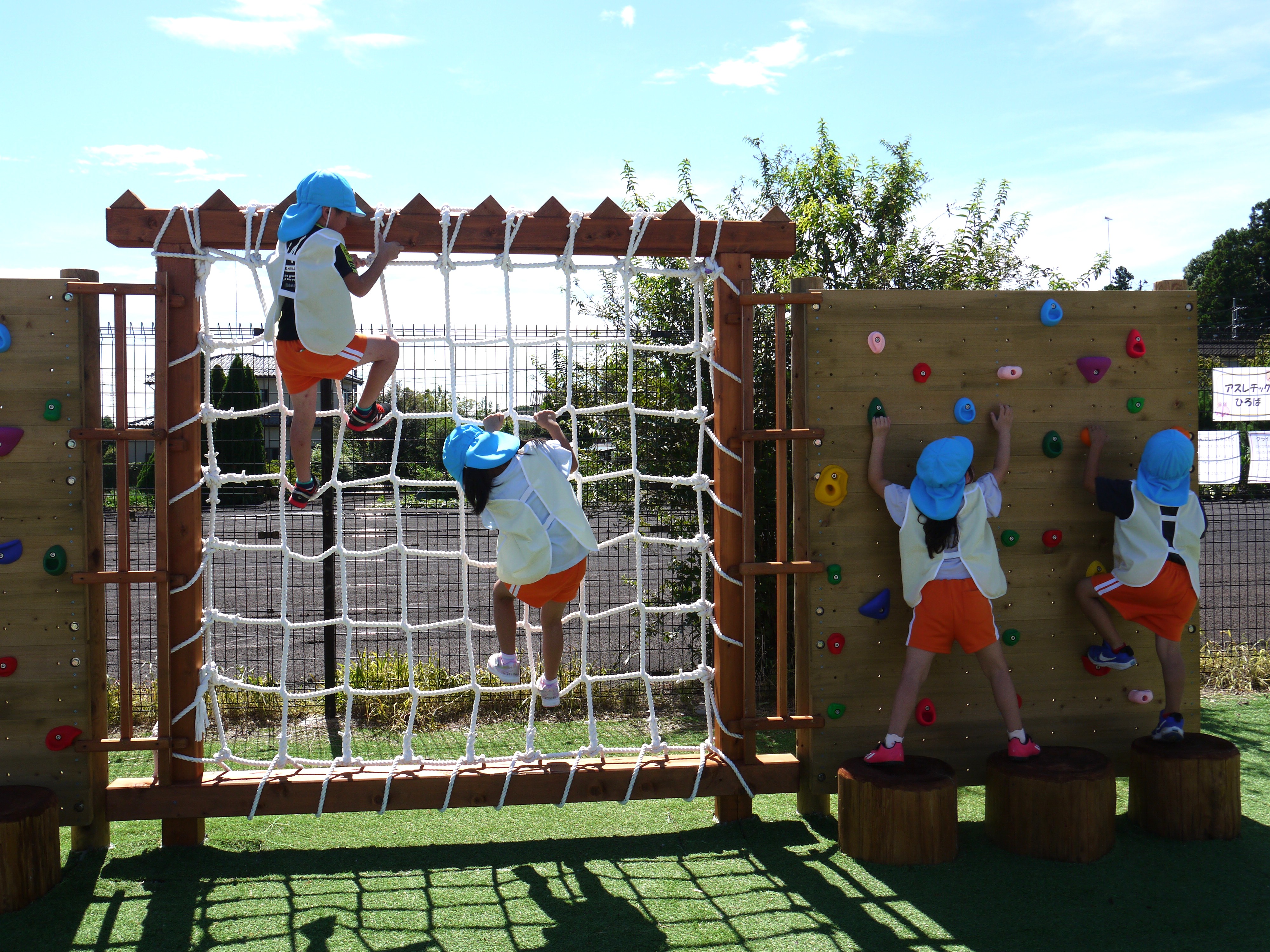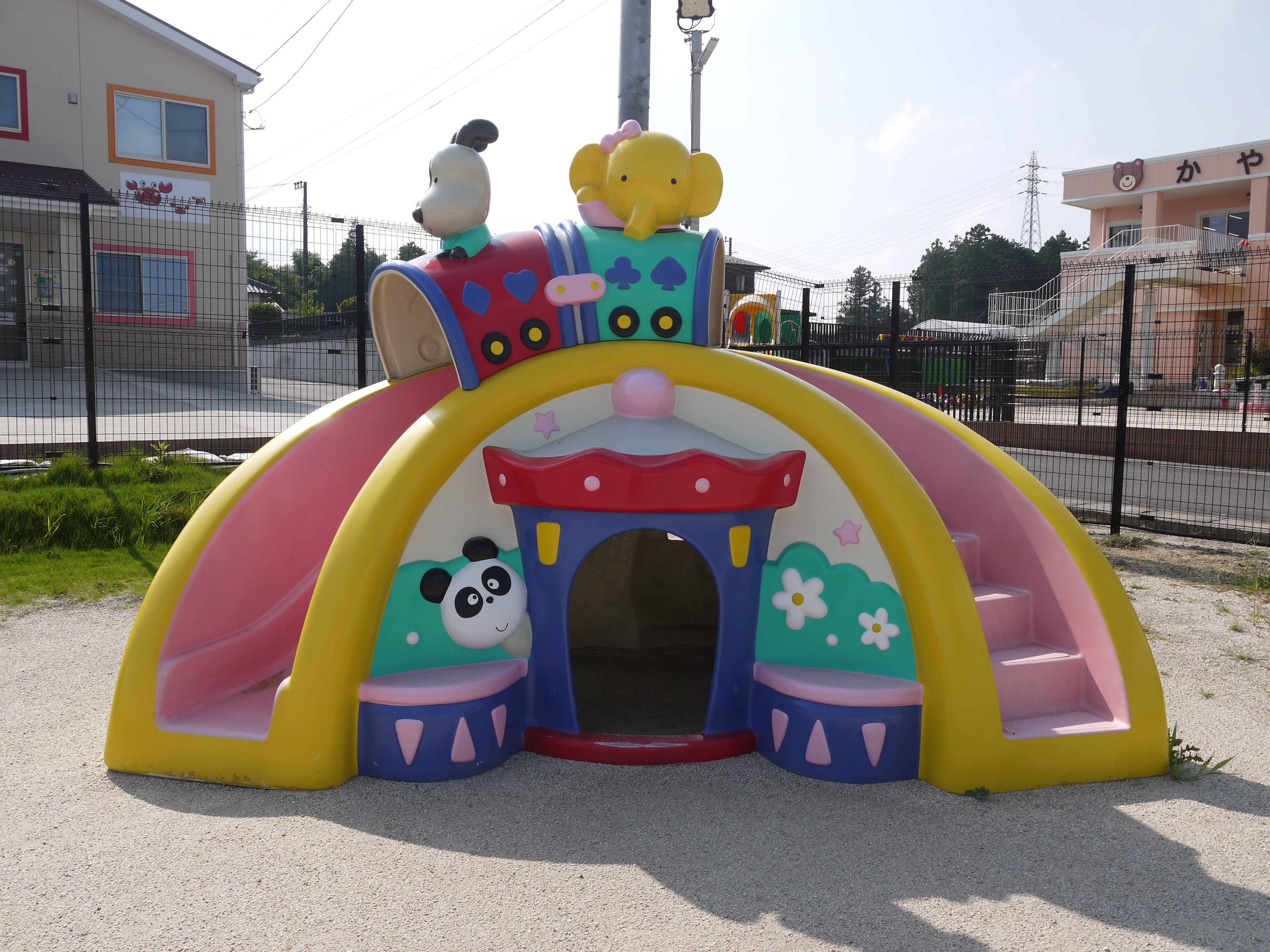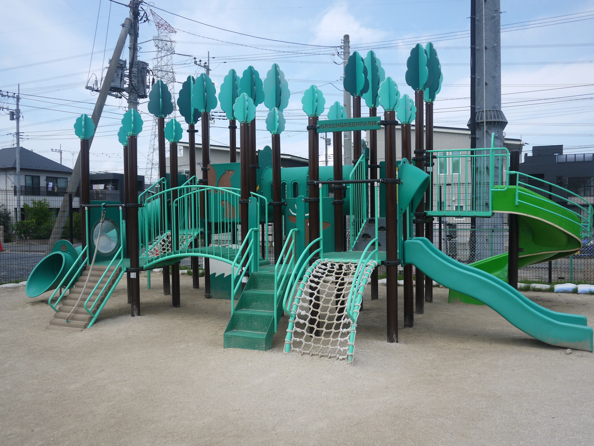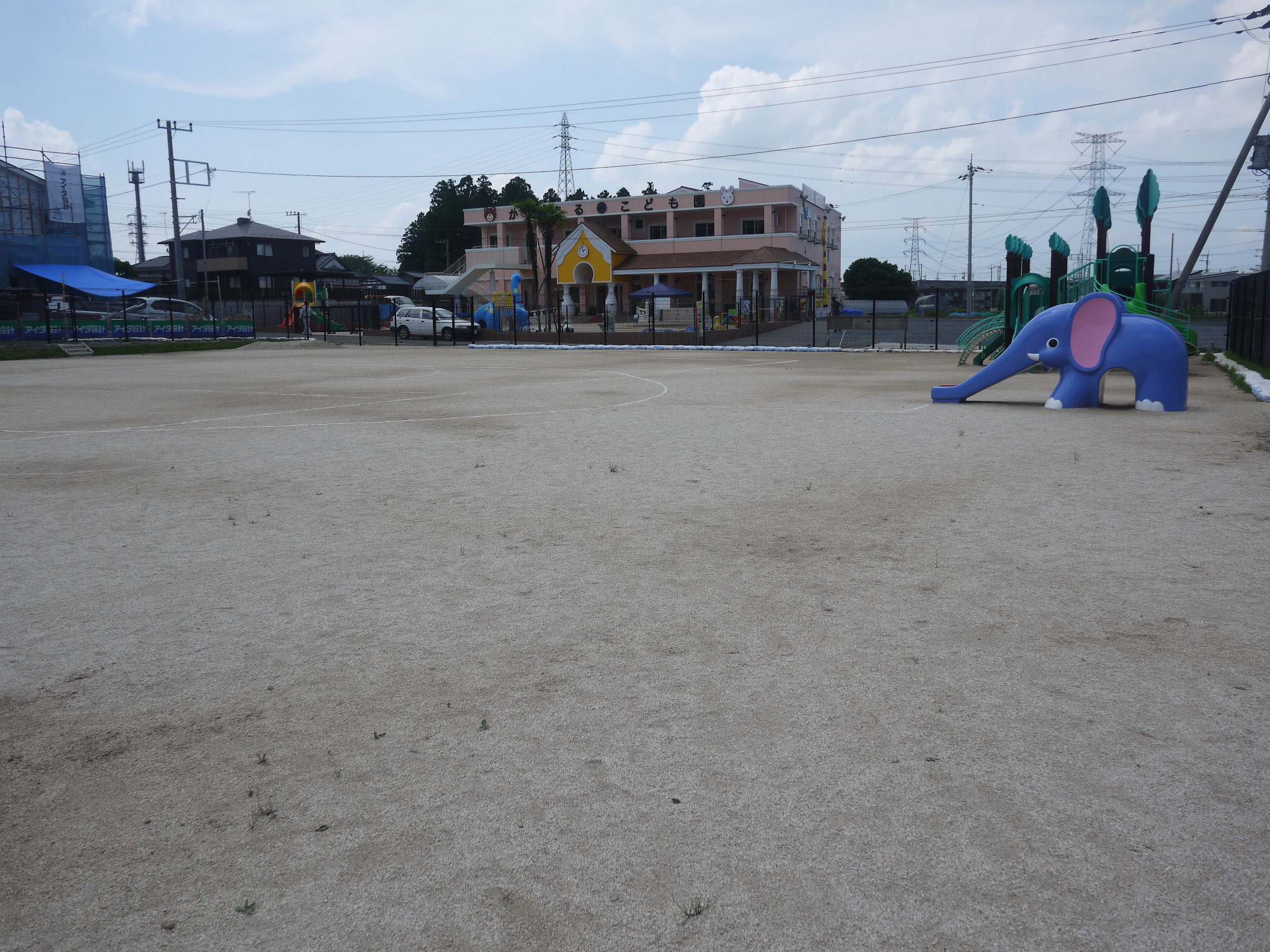 園庭遊具 プレイコミュニケーション(ジャクエツ) ななちゃんすべり台 3歳未満児遊具(ひよこちゃんブランコ) 砂場 第2運動場 第2運動場 大型遊具グリーングリーンファーム ポチランド ぞうさんすべり台 アスレチックひろば くるくるうんてい ロープ・クライミング 丸太渡り ブランコ UFO ガシャコンポンプ